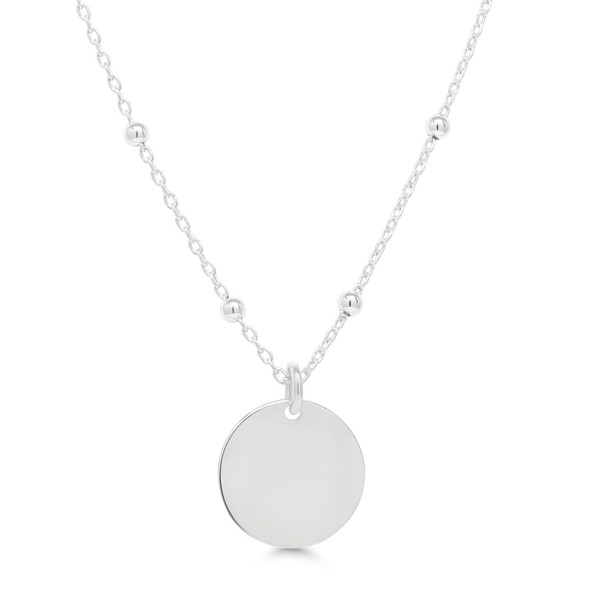 Hopeakaulakoru pyöreällä laatalla. Ketjussa palloja