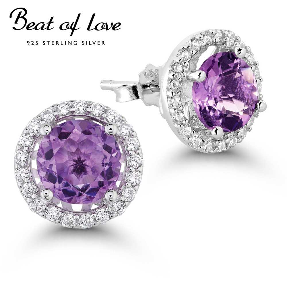 Beat of Love Halo (kehys) hopeakorvakorut aidoilla ametisteilla ja zirkoneilla