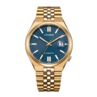 Citizen Automatic -rannekello on valmistettu ruostumattomasta teräksestä. Ranneke ja kuori ovat ruusukullan värisiä. Kellotaulun värinä on upea tyylikäs sininen. Kellossa on safiirilasi ja kookkaan päivyrin kohdalla suurentava kyklooppi.
