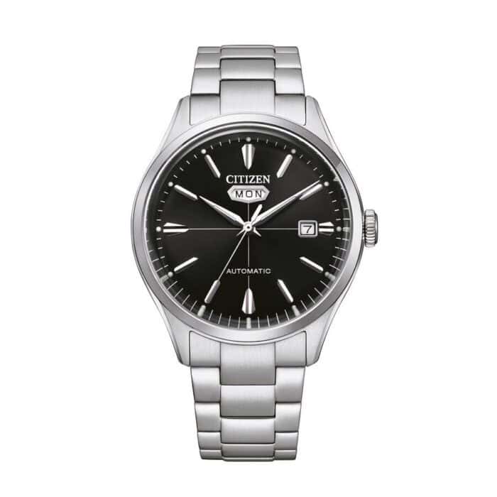 Citizen -automaattikellon kuori on valmistettu ruostumattomasta teräksestä ja se on vesisuojattu sekä testattu 5 bar paineessa. Vesitiiveysluokituksen voi tarkistaa maahantuojalta tai kellon takapohjasta. Kellossa on kovaksi karkaistu mineraalilasi. Päivyri ja iso sekuntiosoitin. Tässä mallissa on kaksoispäivyri; viikonpäivä ja päivämäärä.