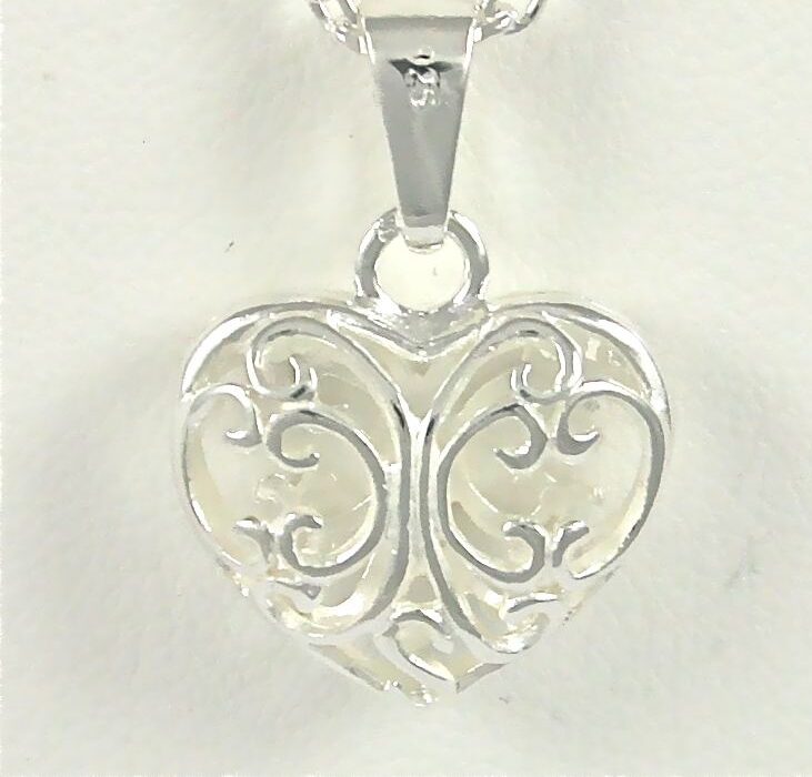 Hopeinen Filigraanisydänriipus