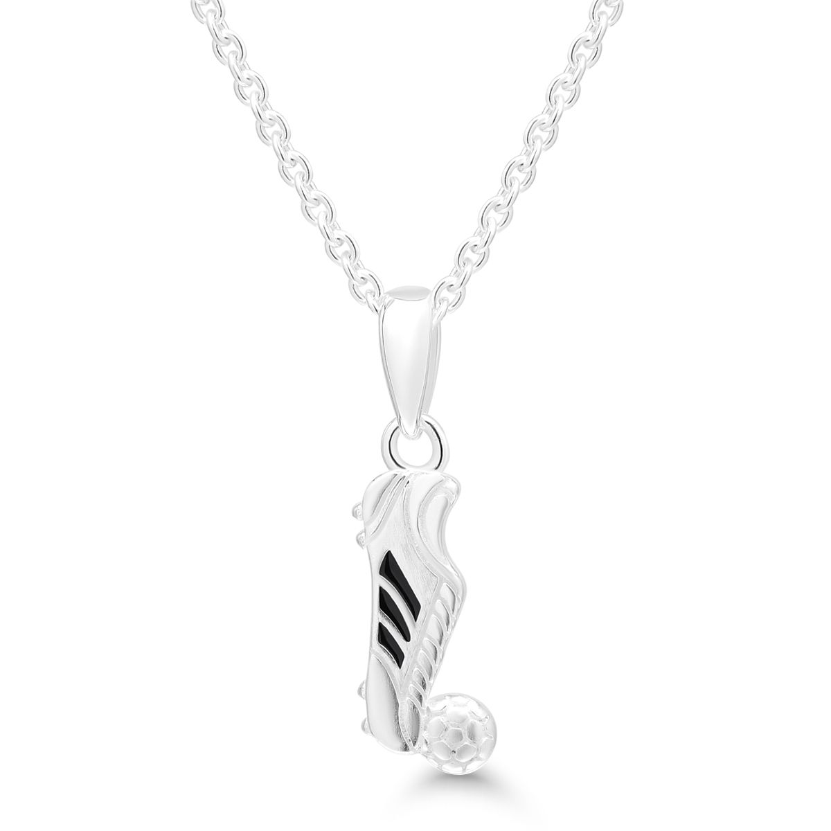 Lasten emaloitu riipus hopeaa, jalkapallokenkä ja pallo. Sisältää hopeaketjun, jossa säätövara 36-40cm.