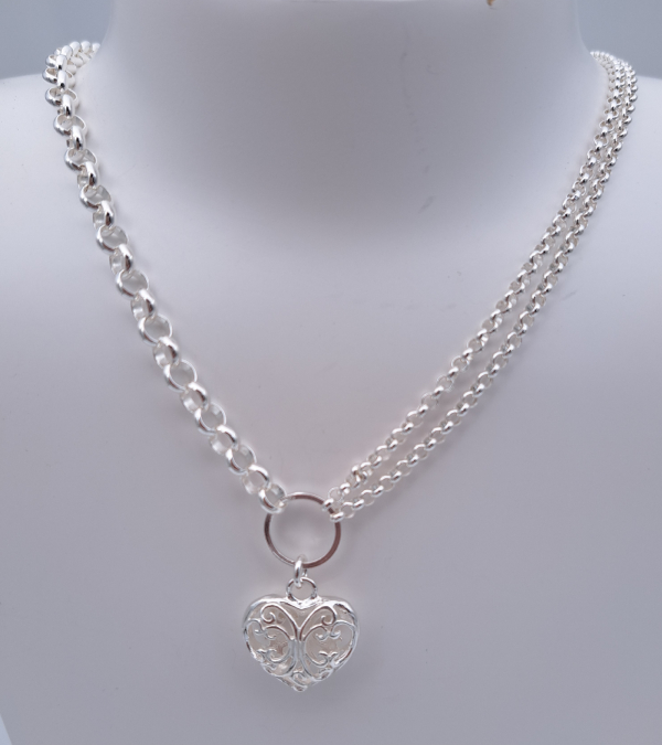 Sydän on filigraanikoristeinen eli pitsimäinen kuvio.
