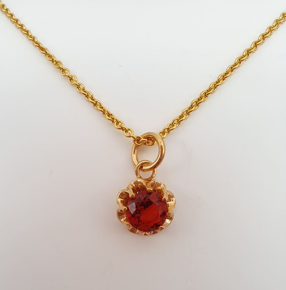 Hopeinen kullattu kiviriipus punainen kivi, upea yhdistelmä.