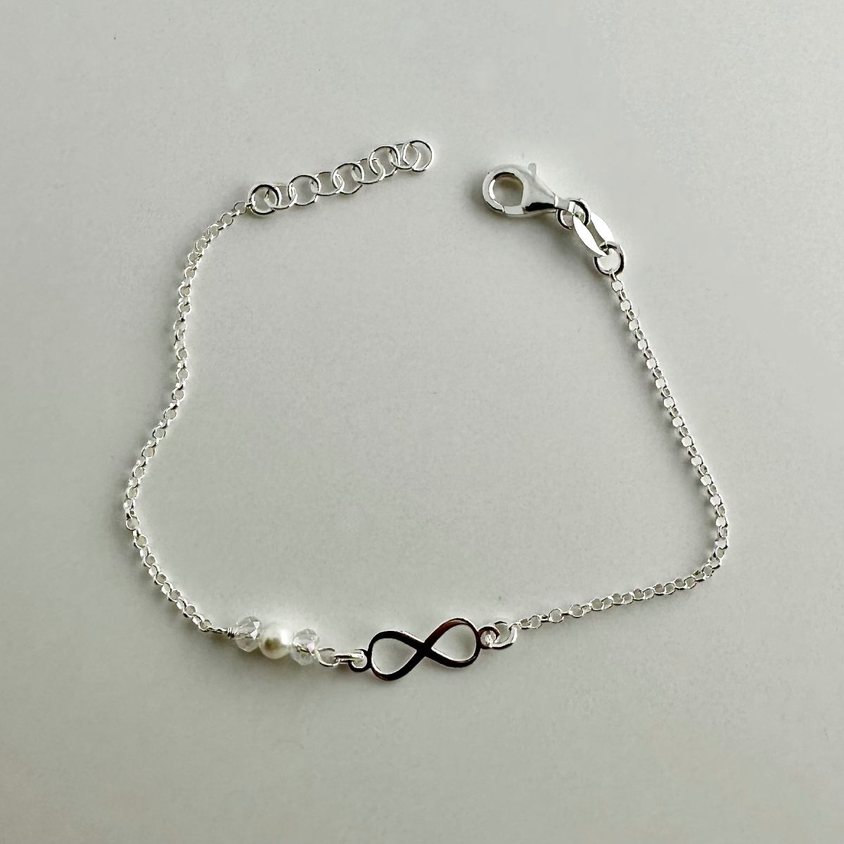 Ihastuttava lasten ranneketju, jossa koristeena helmiä ja ikuisuus-symboli