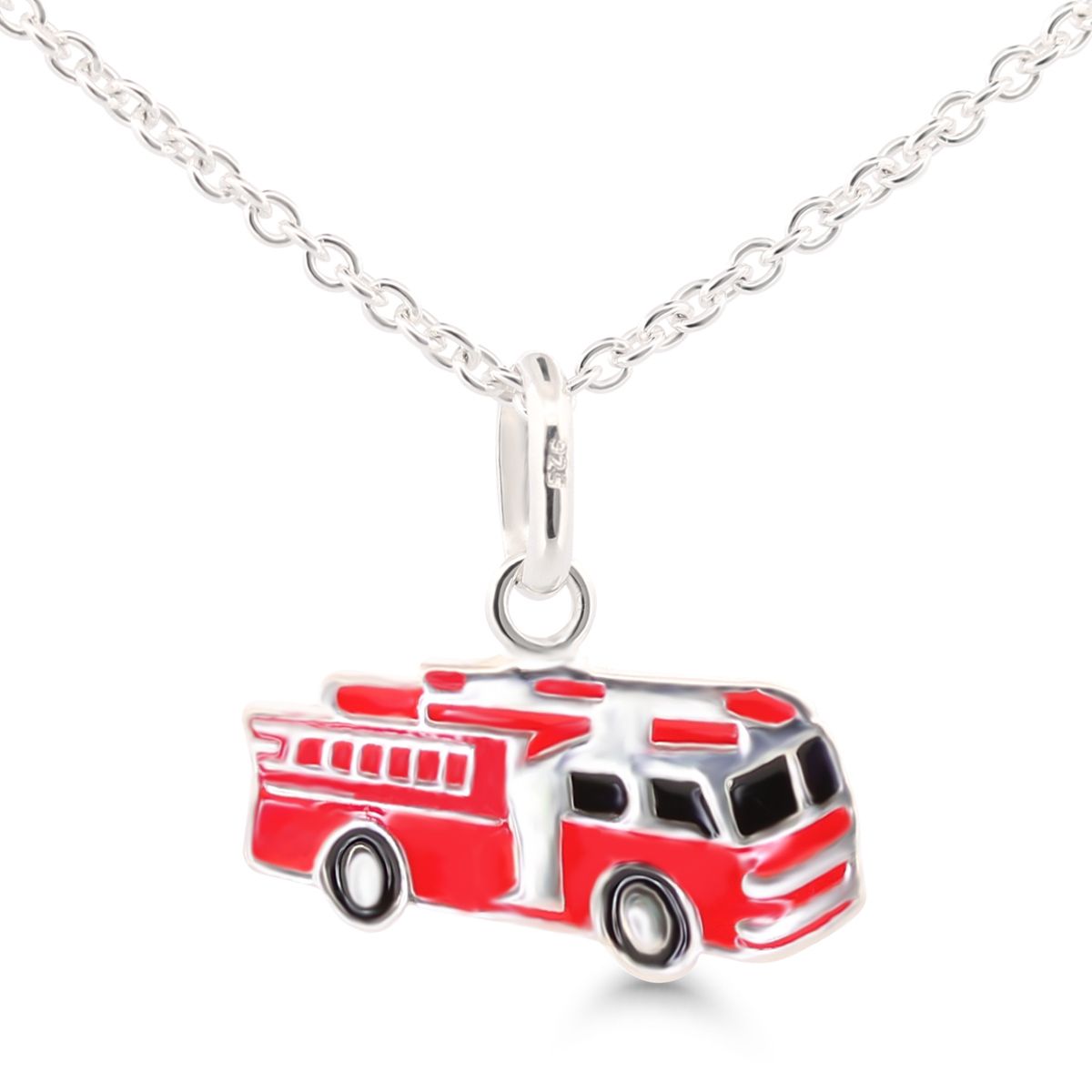 Lasten emaloitu paloauto riipus hopeaa. Sisältää hopeaketjun, jossa säätövara 36-40cm.