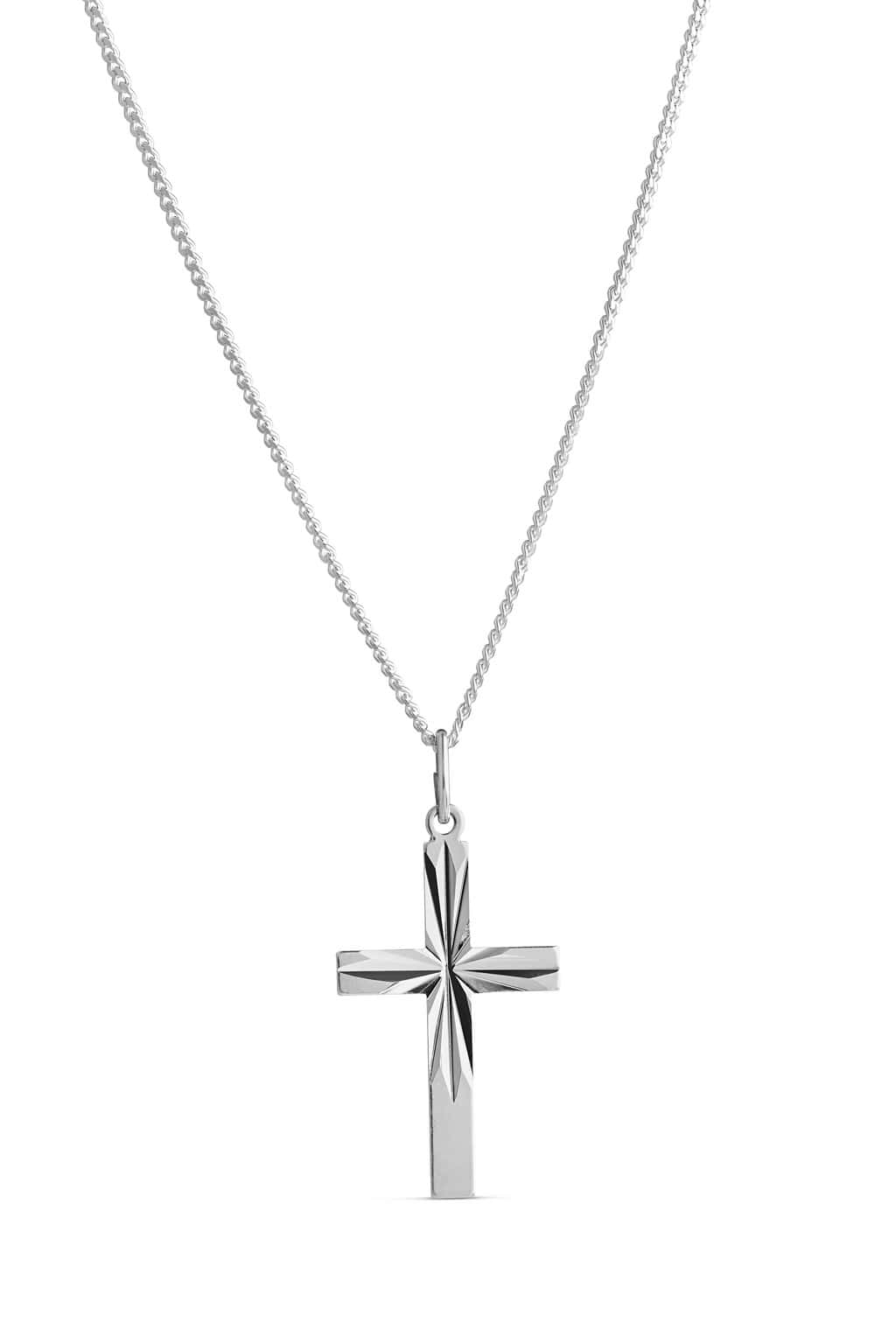 Yksinkertaisen tyylikäs kirkasta hopeaa oleva ristiriipus.