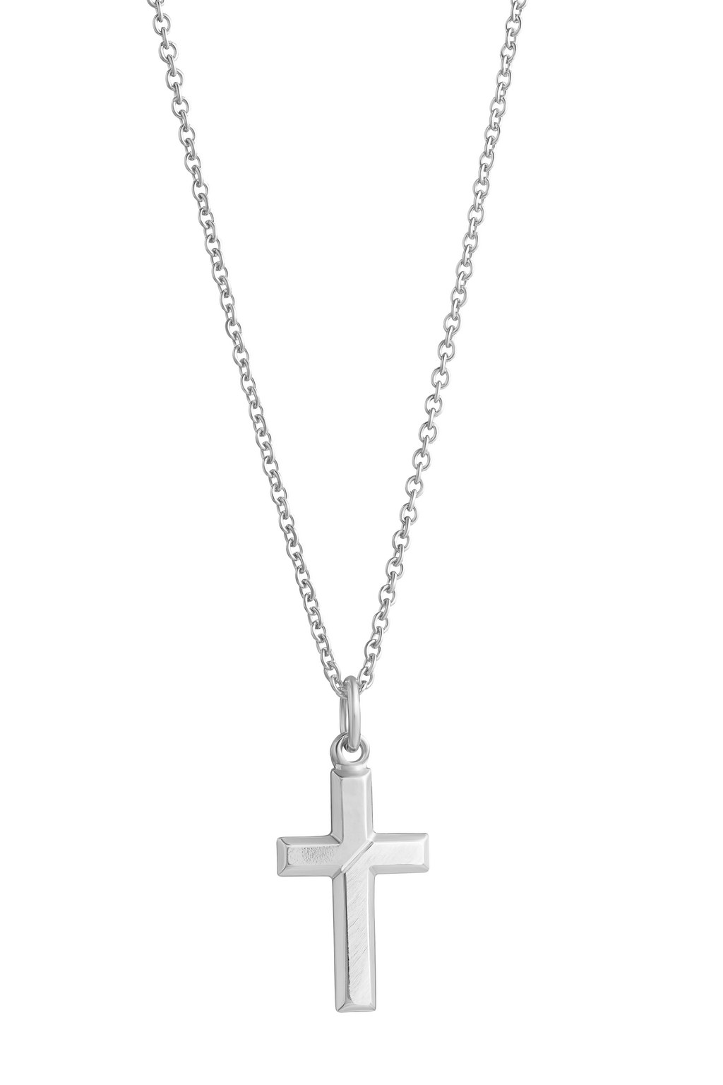 Yksinkertaisen tyylikäs hillitysti hopeaa oleva ristiriipus.