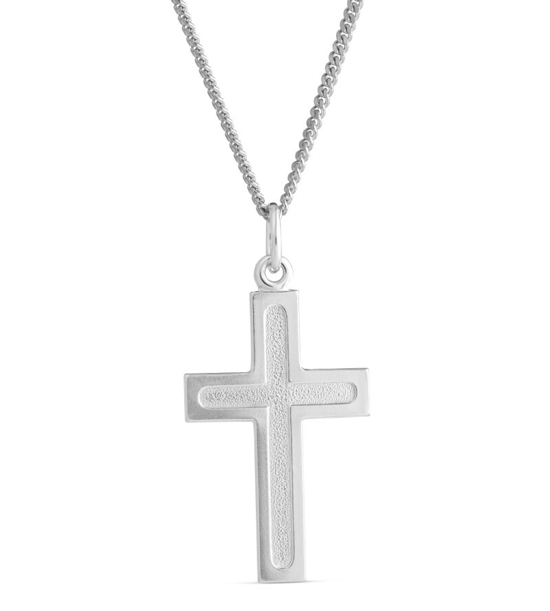 Yksinkertaisen tyylikäs kirkasta hopeaa oleva ristiriipus.