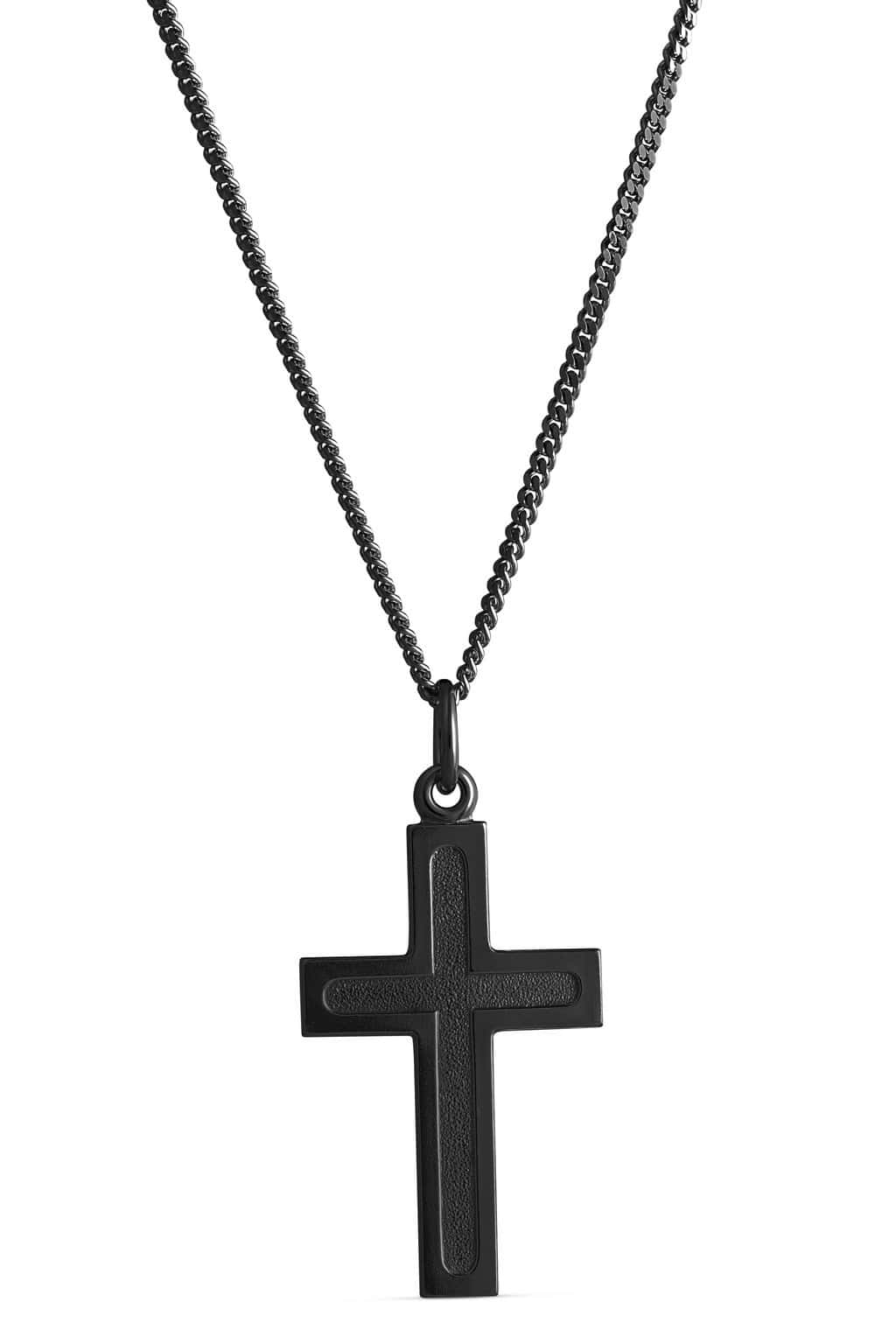 Yksinkertaisen tyylikäs mustaksi tummennettua hopeaa oleva ristiriipus.