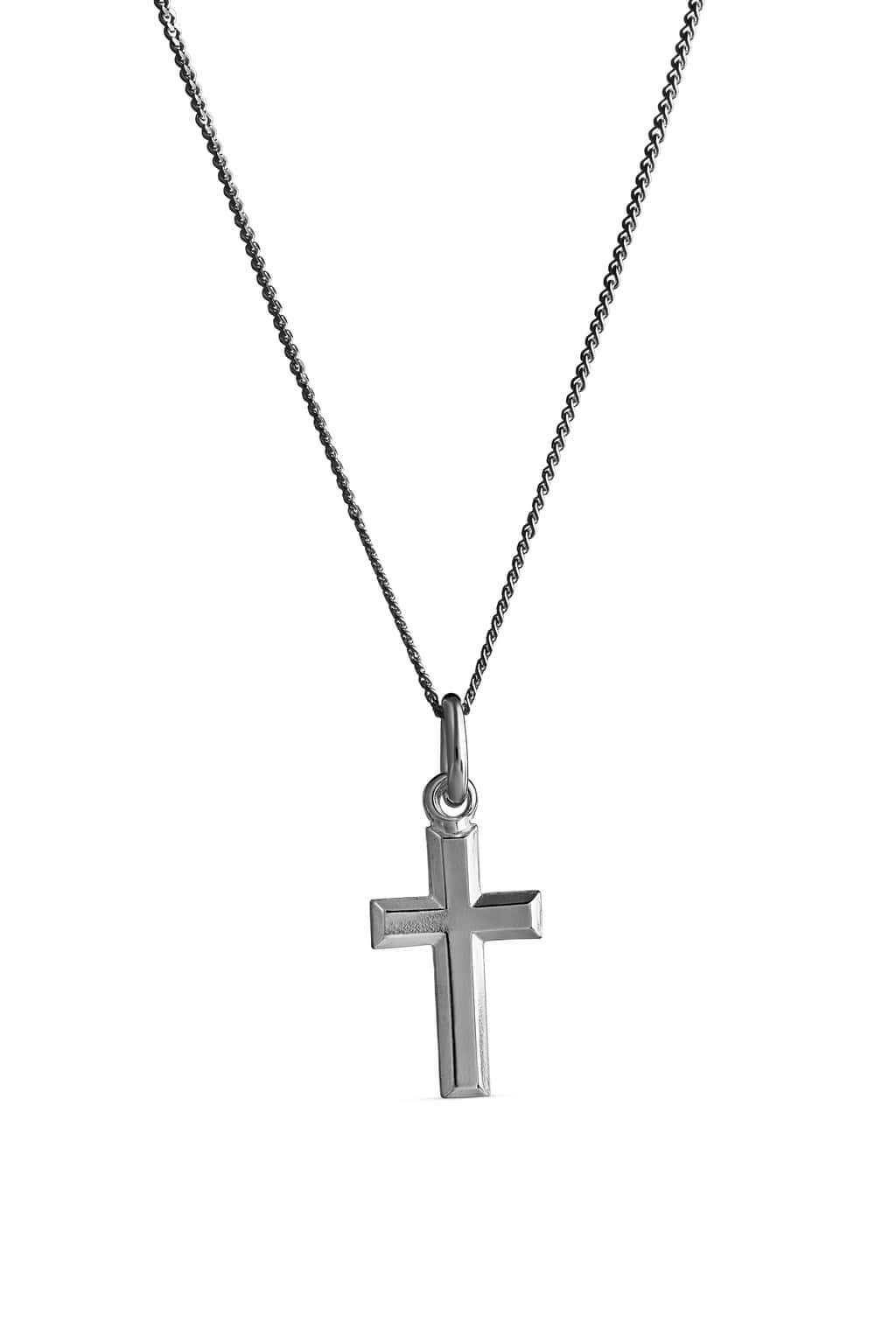 Yksinkertaisen tyylikäs tummennettua hopeaa oleva ristiriipus.