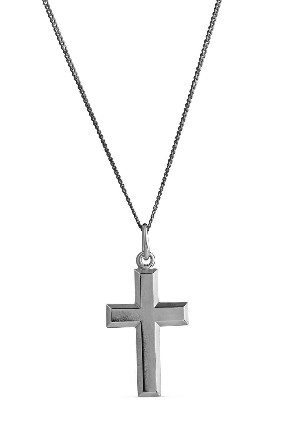 Yksinkertaisen tyylikäs tummennettua hopeaa oleva ristiriipus.