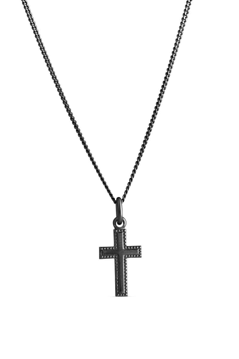 Yksinkertaisen tyylikäs mustaksi tummennettua hopeaa oleva ristiriipus.