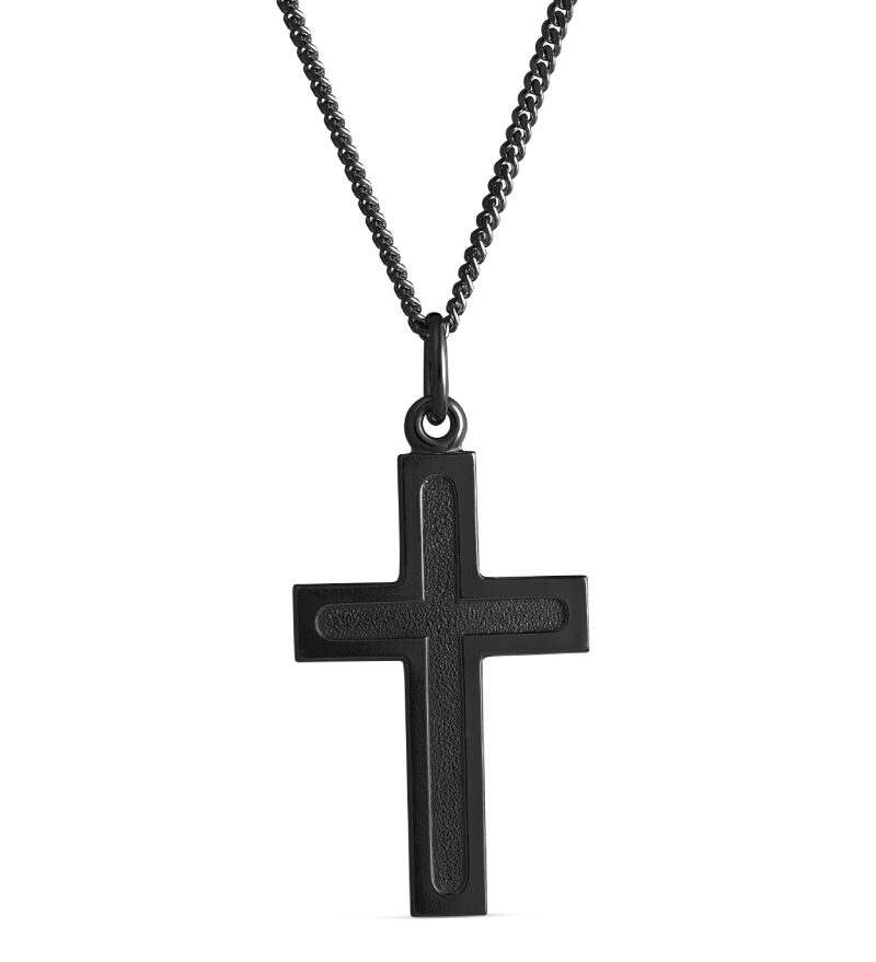 Yksinkertaisen tyylikäs tummennettua hopeaa oleva ristiriipus.
