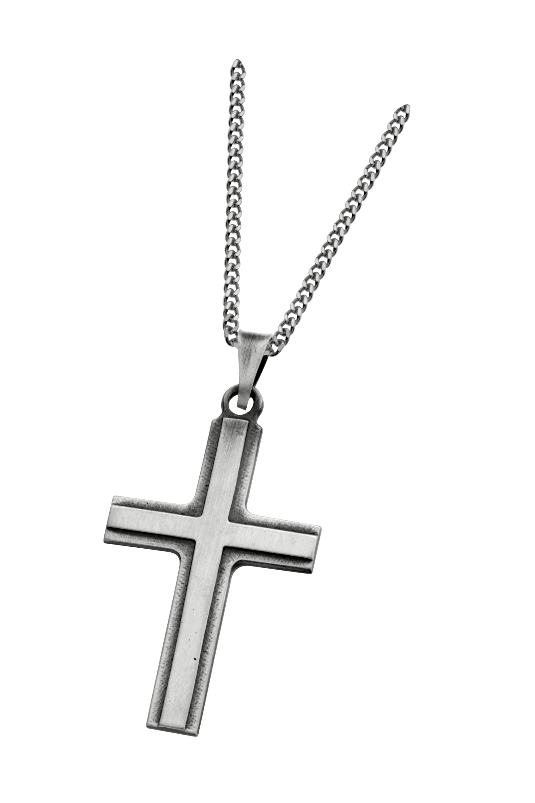 Näyttävä hopeinen ristiriipus. Tummennettua hopeaa, jossa ”kaksi” ristiä päällekkäin.