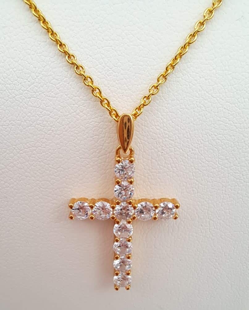 Ihastuttava kullattua hopeaa oleva ristiriipus.