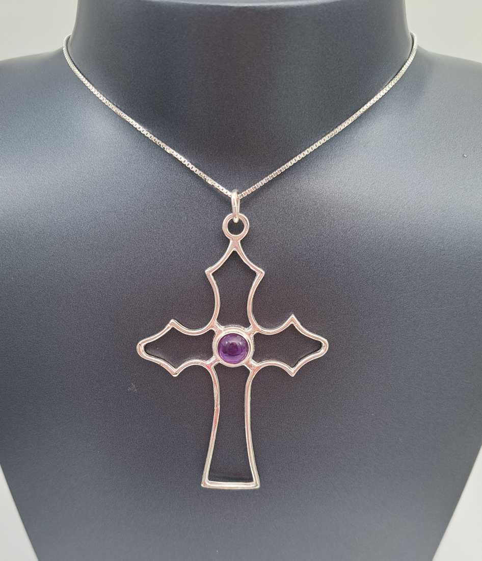 Hopeinen ristiriipus ametistilla 7805
