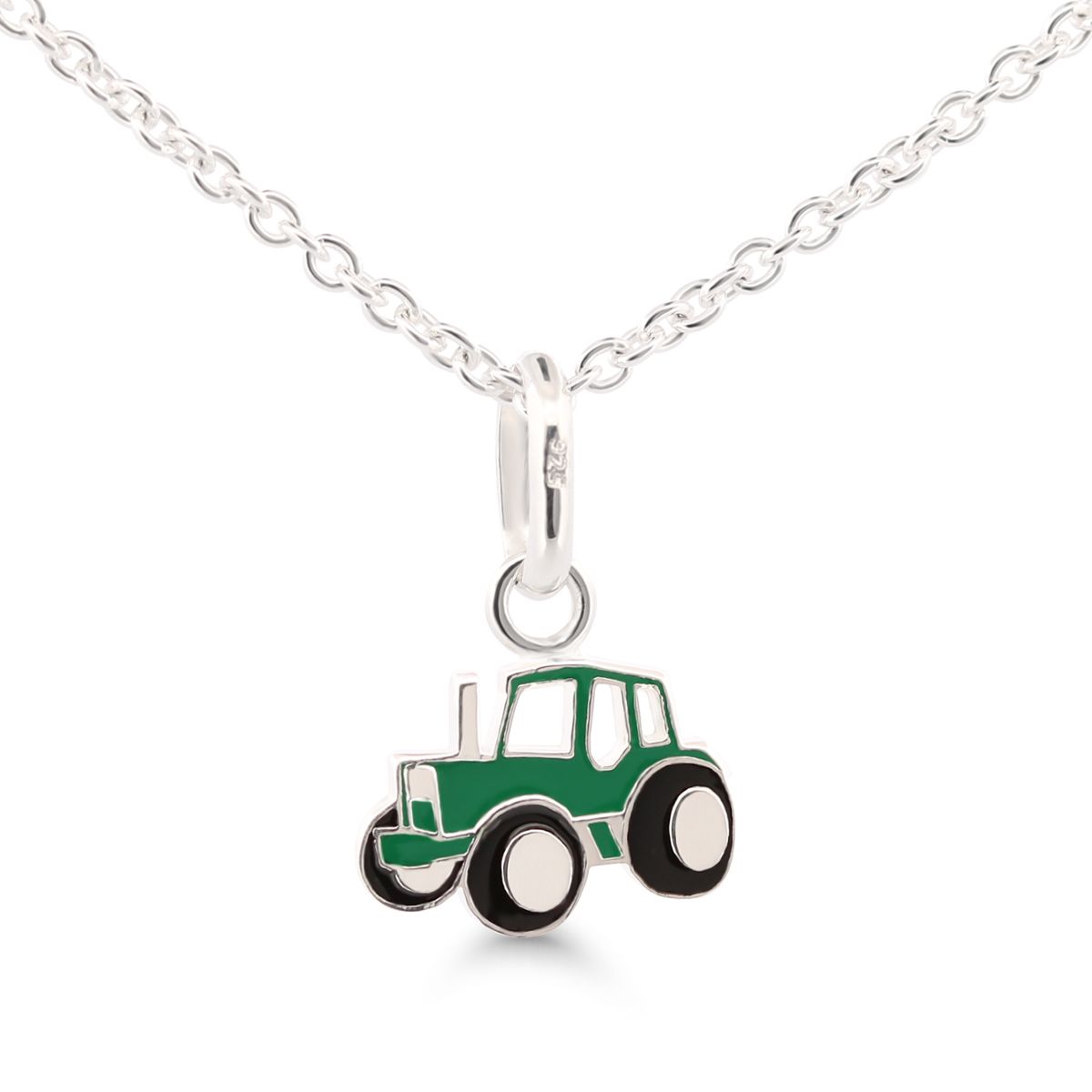 Lasten emaloitu traktori riipus hopeaa. Sisältää hopeaketjun, jossa säätövara 36-40cm.