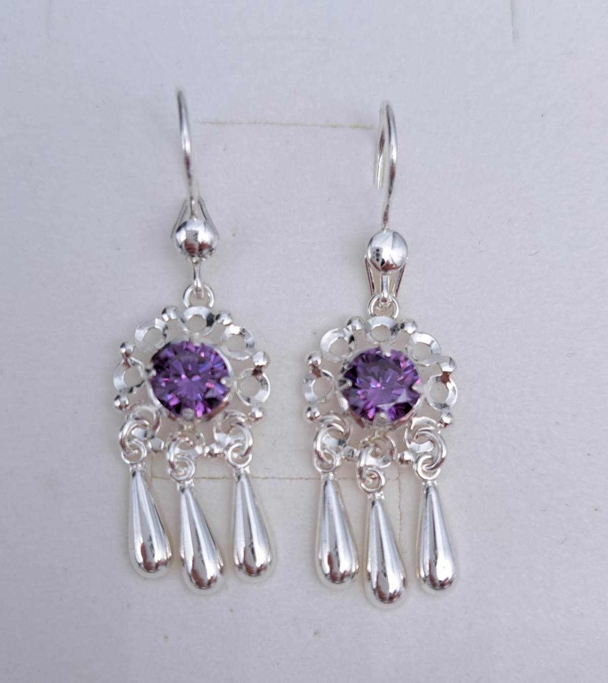 Hopeiset korvakorut violeteilla kivillä