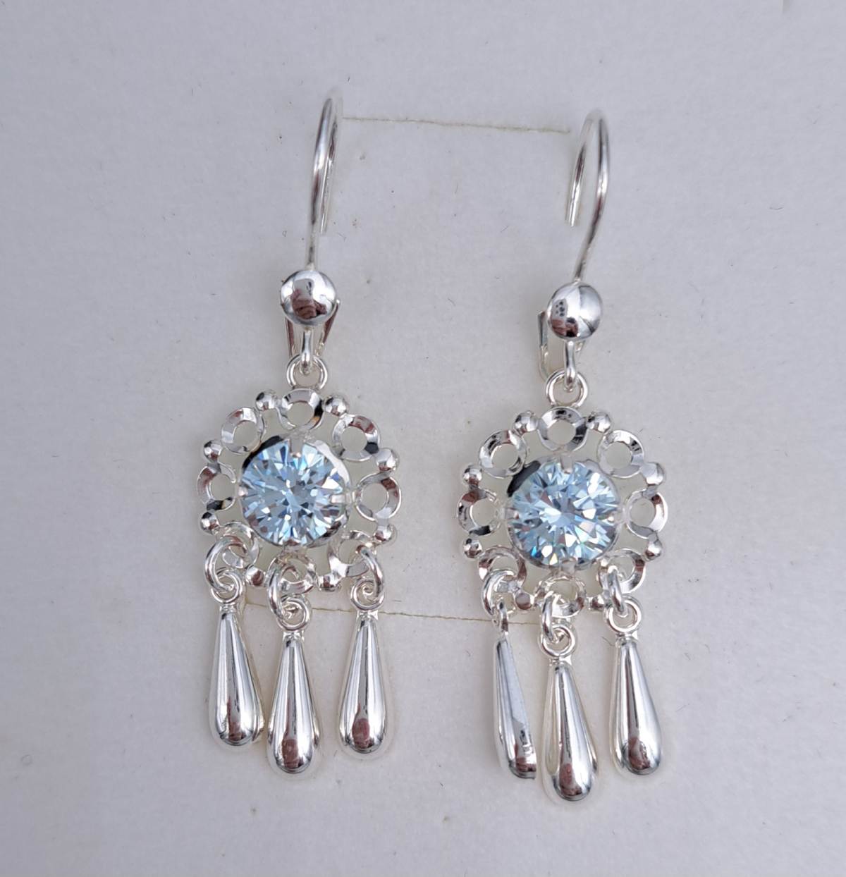 Hopeiset korvakorut vaaleansinisillä kivillä