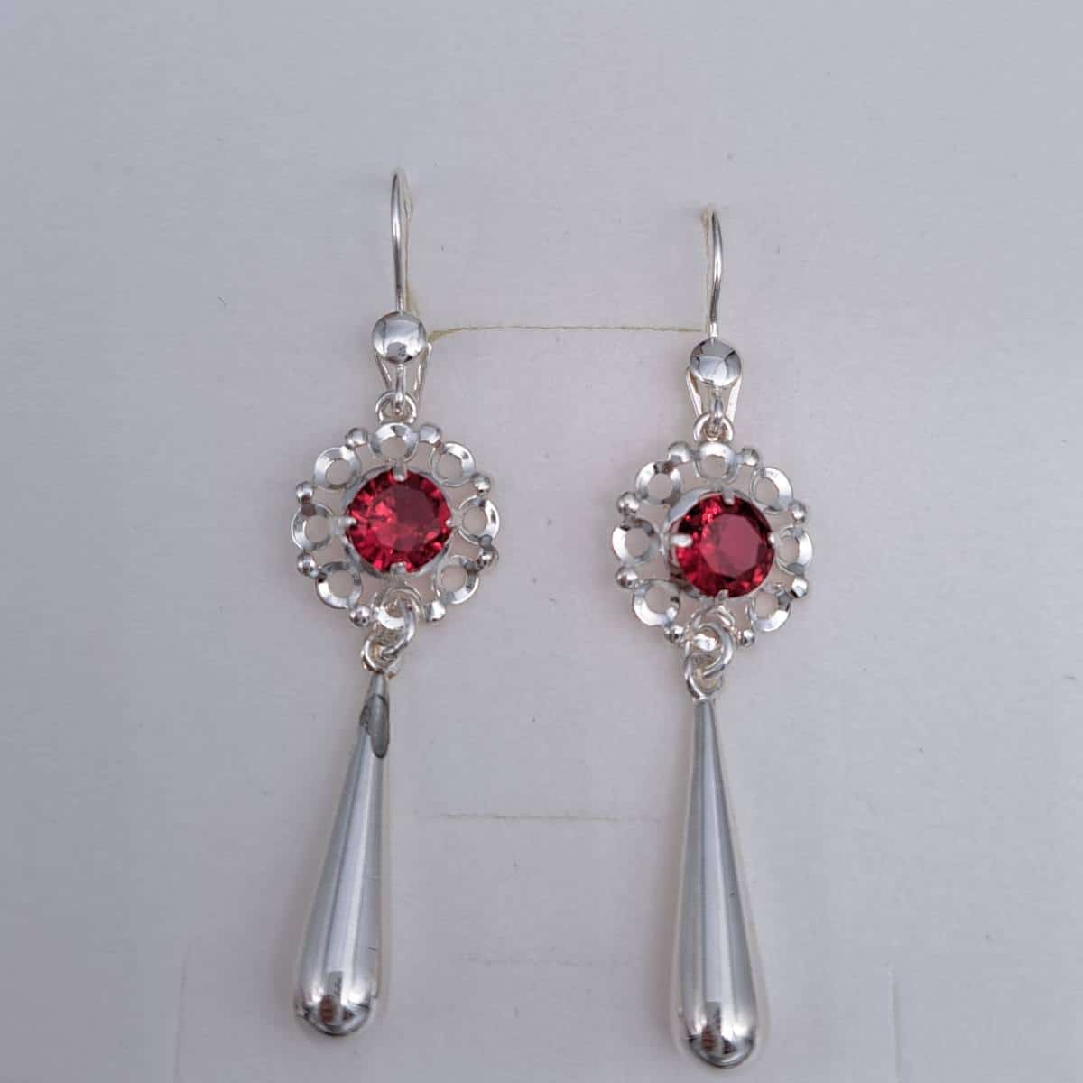 Hopeiset korvakorut punaisilla kivillä