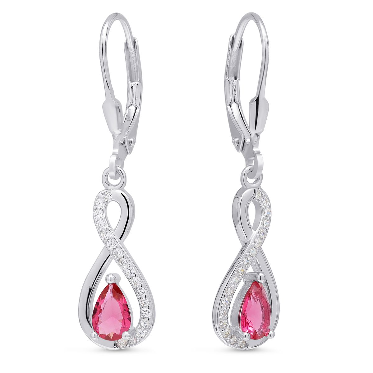 Roikkuvat hopeakorvakorut rubiininpunaisilla zirkoneilla. Lukollinen tukeva mekanismi takaa, että korvakorut eivät pääse tippumaan.
