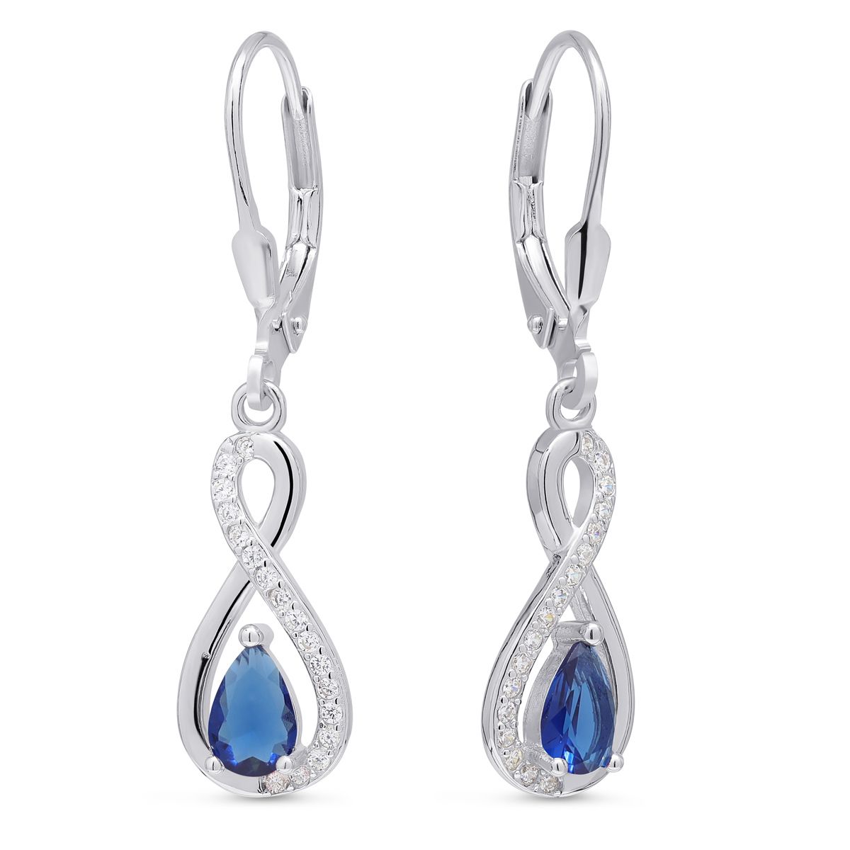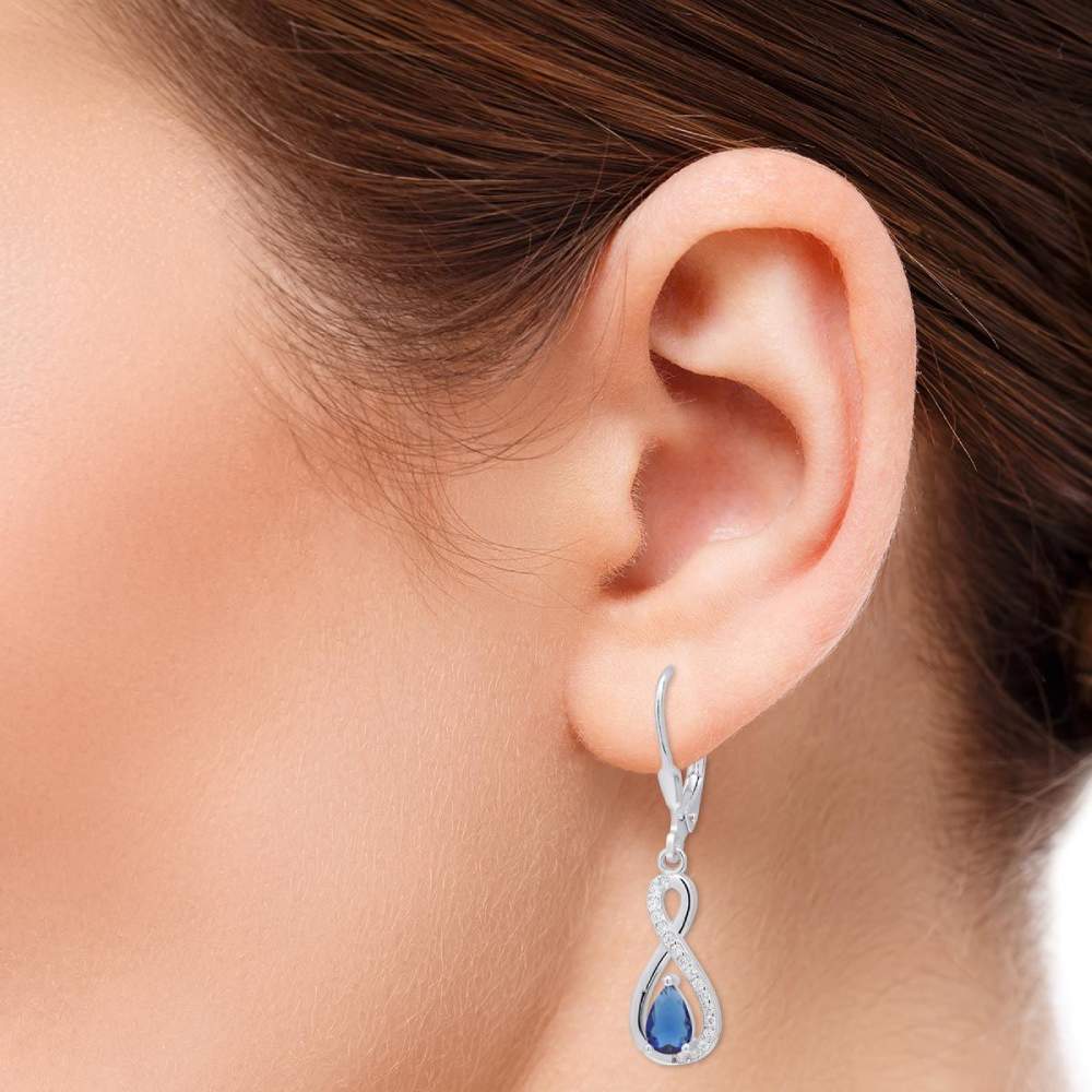 Roikkuvat hopeakorvakorut safiirinsinisillä zirkoneilla. Lukollinen tukeva mekanismi takaa, että korvakorut eivät pääse tippumaan.