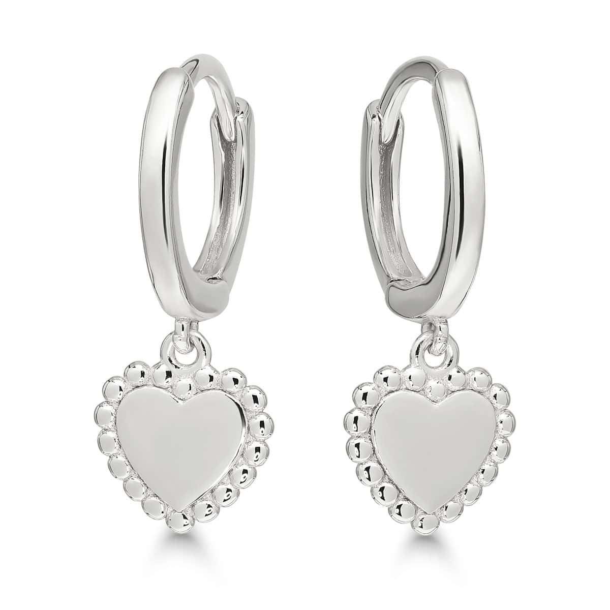 Hopeakorvakorut, joista roikkuvat sydämet.