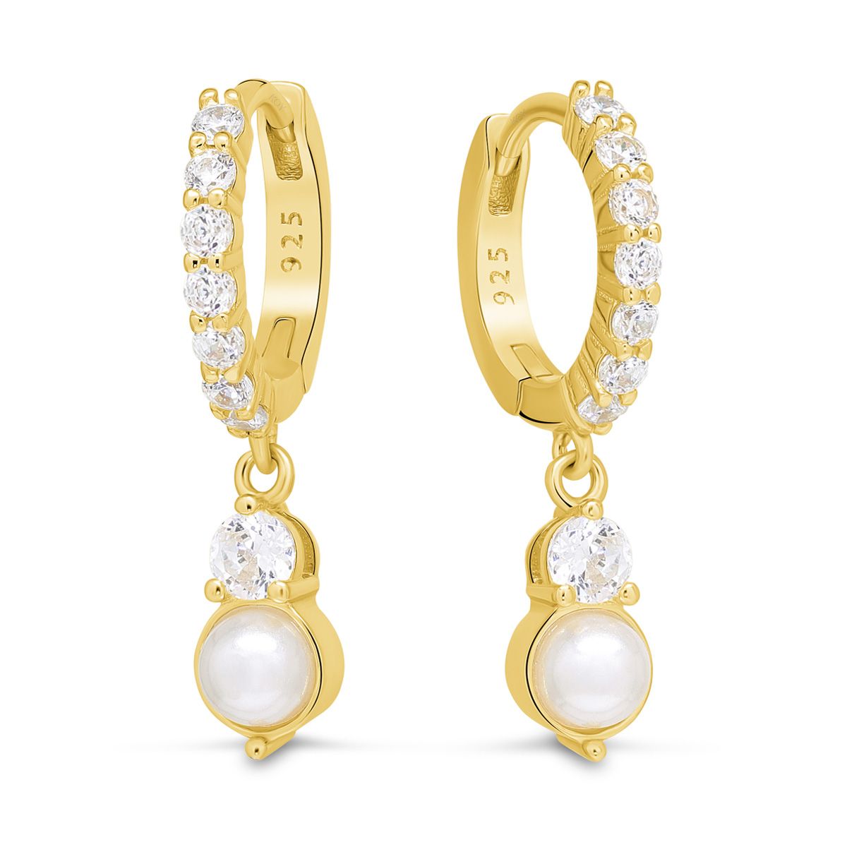 Hopeiset saranarenkaat zirkoneilla, roikkuu zirkoni ja synt. helmi