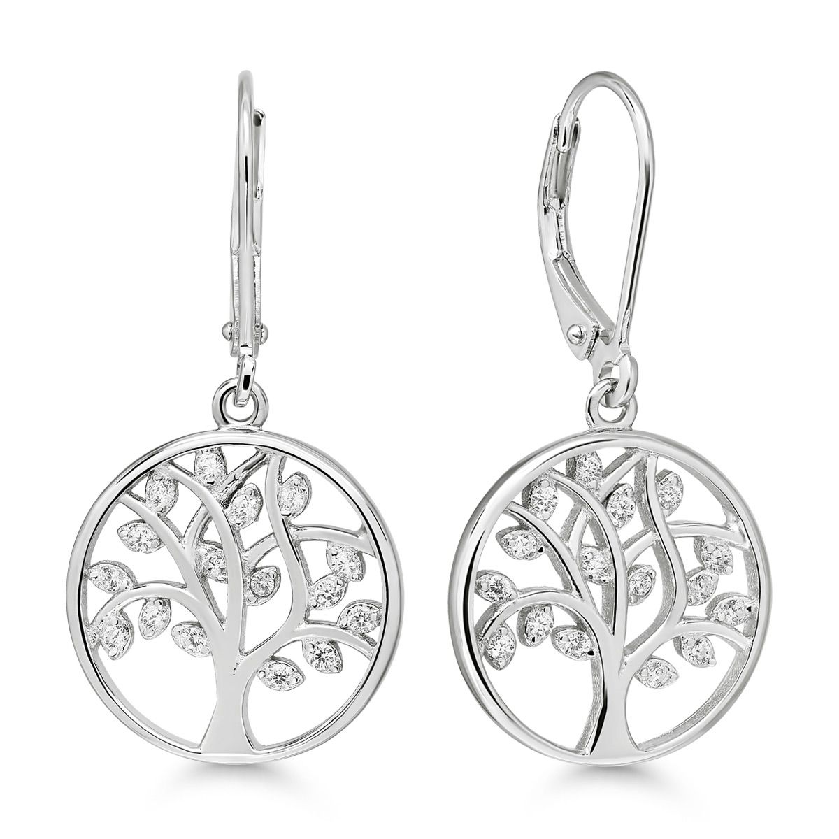 Hopeiset koristeelliset elämänpuu korvakorut zirkoneilla