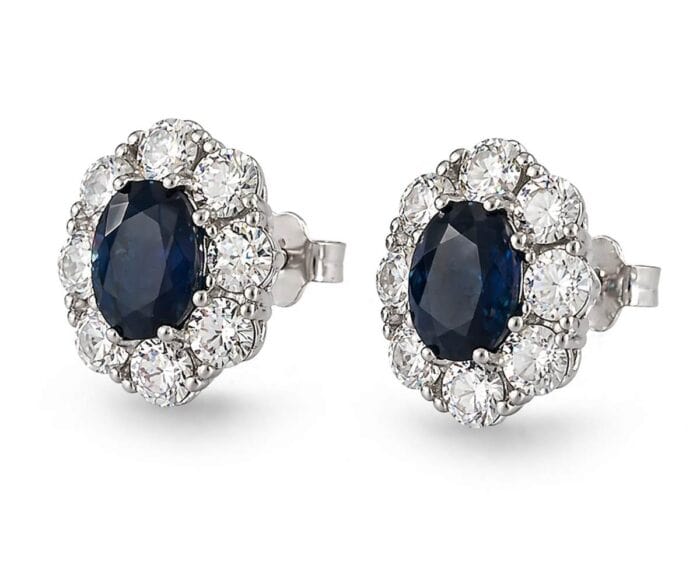 Todella näyttävät hopeiset korvakorut sinisellä ja kirkkailla zirkoniakivillä.