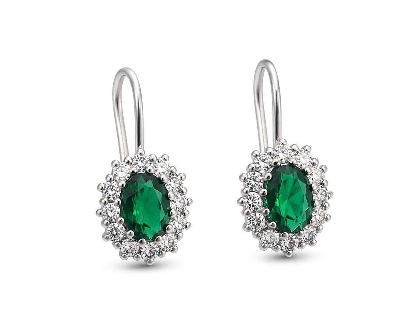 Todella näyttävät hopeiset korvakorut vihreällä ja kirkkailla zirkoniakivillä.