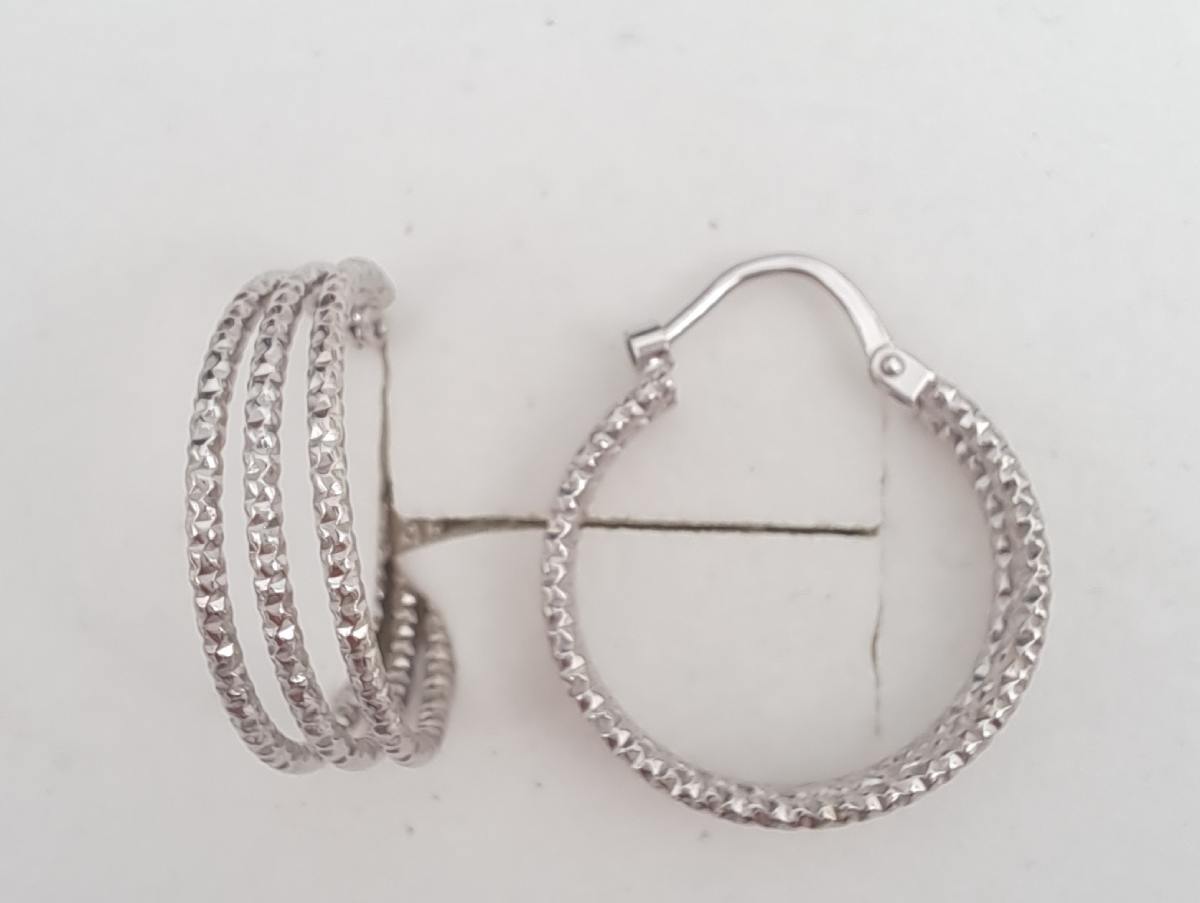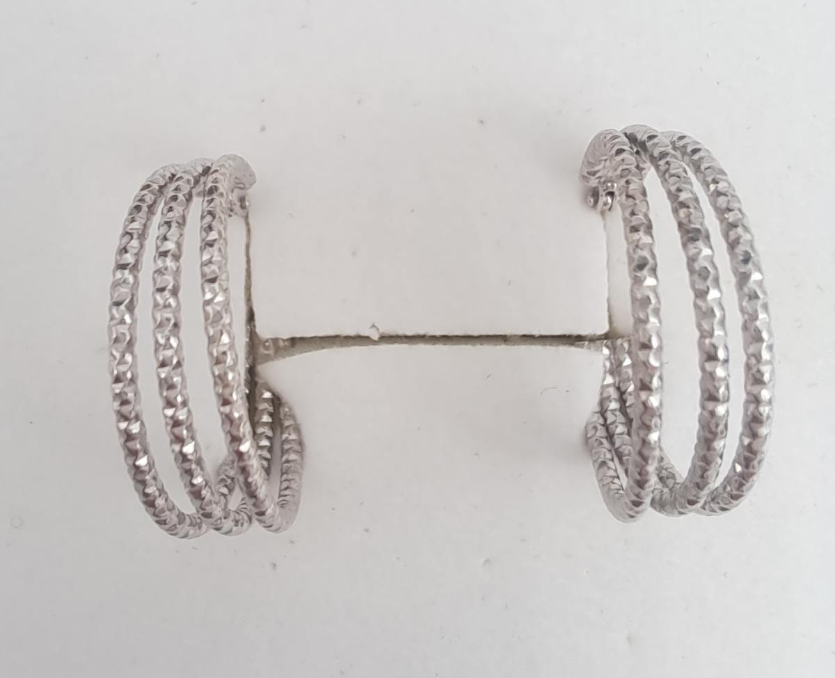 Tyylikkäät kolmiosaiset hopearenkaat. Jokaisessa renkaassa upea timanttileikkauskuvio