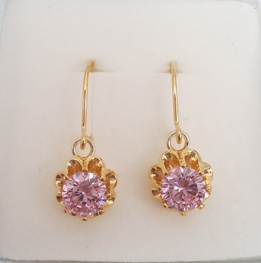 Hopeiset kullatut korvakorut pinkki kivi, upea yhdistelmä.