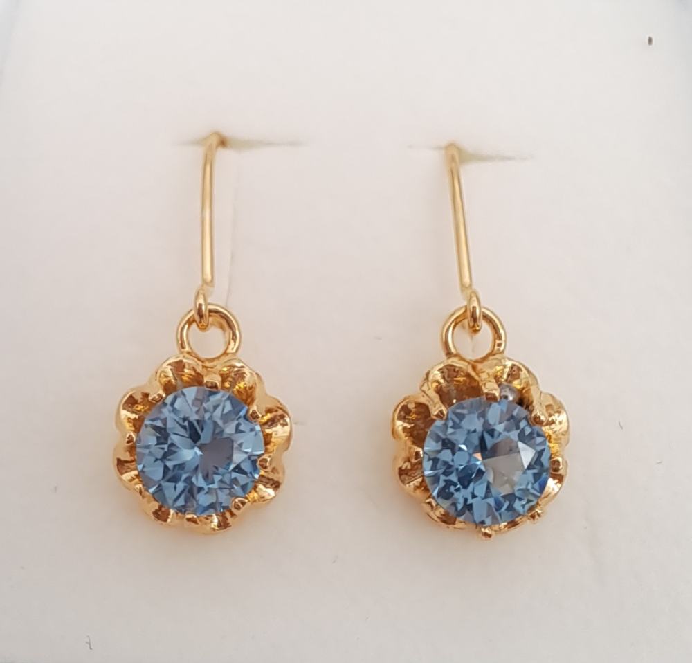 Hopeiset kullatut korvakorut sininen kivi, upea yhdistelmä.