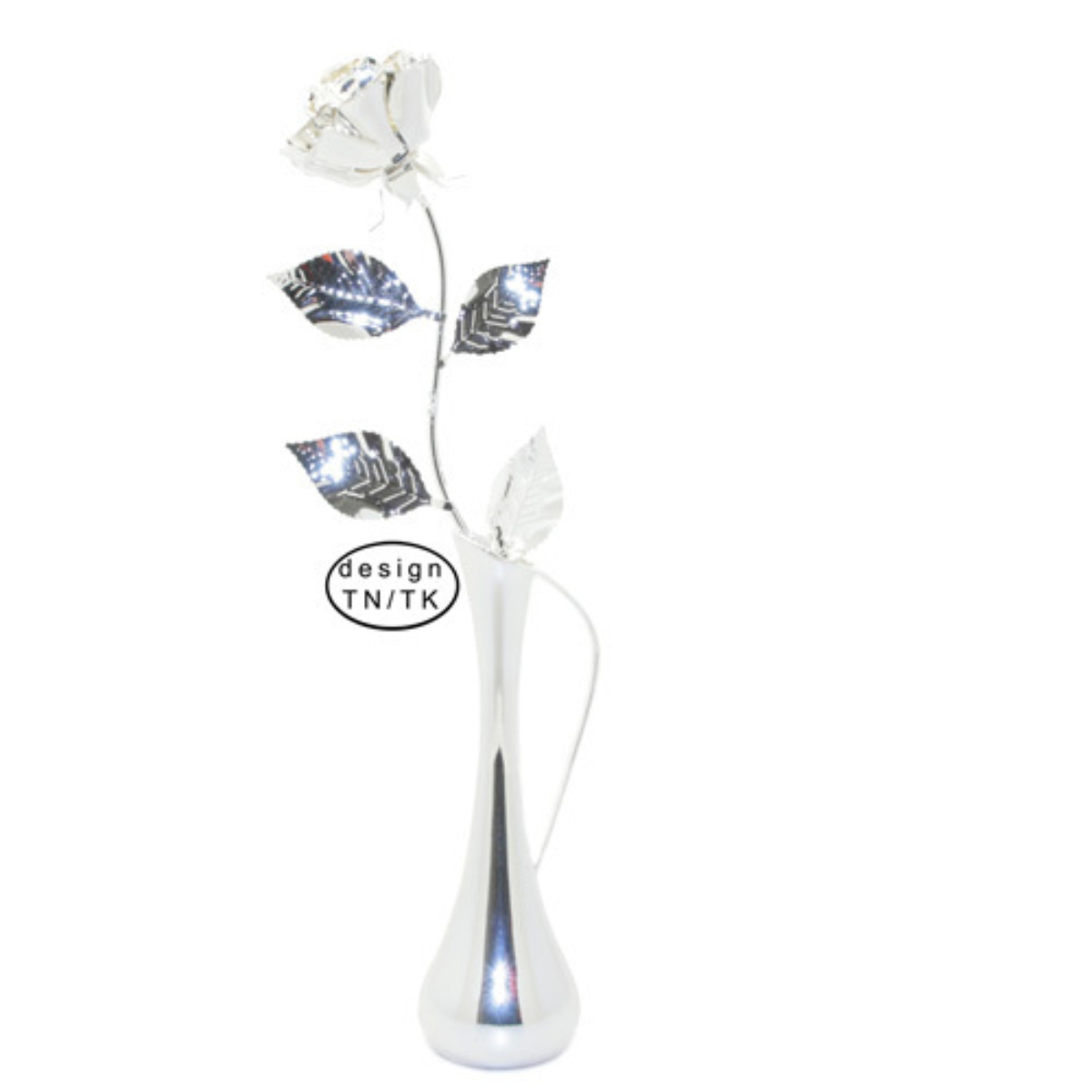 Hopeoitu juhlaruusu ja maljakko