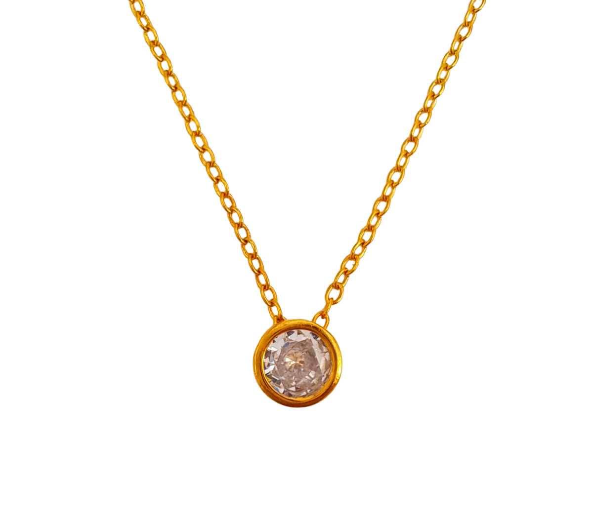 Ihastuttava kaulakoru, jossa riipuksena kirkas zirkoniakivi