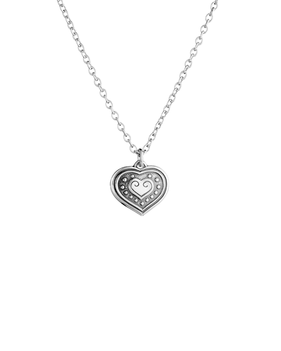 Sydämen viesti on yleismaailmallinen ja ikuinen. Tämän sydämen esikuva on Eurasta viikinkiajalta. Herkkä sydänriipus tsellesi tai lahjaksi. Riipuksen sileä taustapuoli soveltuu kaiverrettavaksi. Säädettävä pituus 45/42 cm. Saatavissa myös pronssisena.