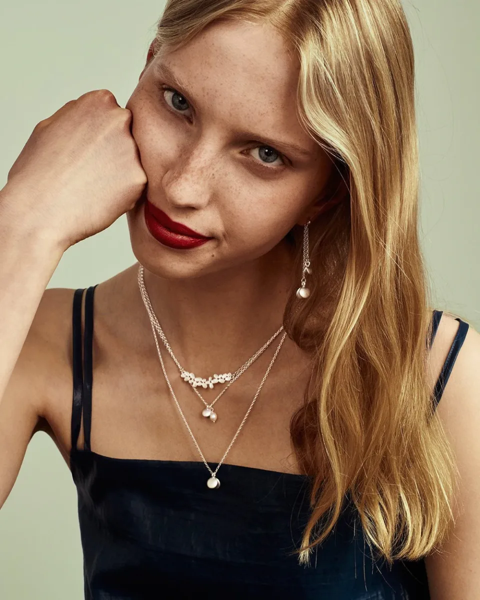 Haaveista totta. Hopeasta valmistetun Haave-kaulakorun riipusosassa pienistä mattapintaisista silmuista muodostuu herkkä pitsimäinen kudelma. Jousirengaslukko. Säädettävä pituus 42/45 cm.