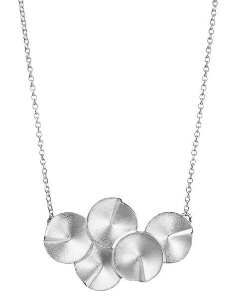 Kaikuja-kaulakorun veistoksellinen riipusosa koostuu toisiinsa yhdistyvistä kartiomaisista hopeaelementeistä. Hienostunut, tyylikäs koru, jossa säädettävä pituus 45/42 cm.