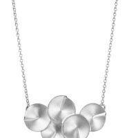 Kaikuja-kaulakorun veistoksellinen riipusosa koostuu toisiinsa yhdistyvistä kartiomaisista hopeaelementeistä. Hienostunut, tyylikäs koru, jossa säädettävä pituus 45/42 cm.