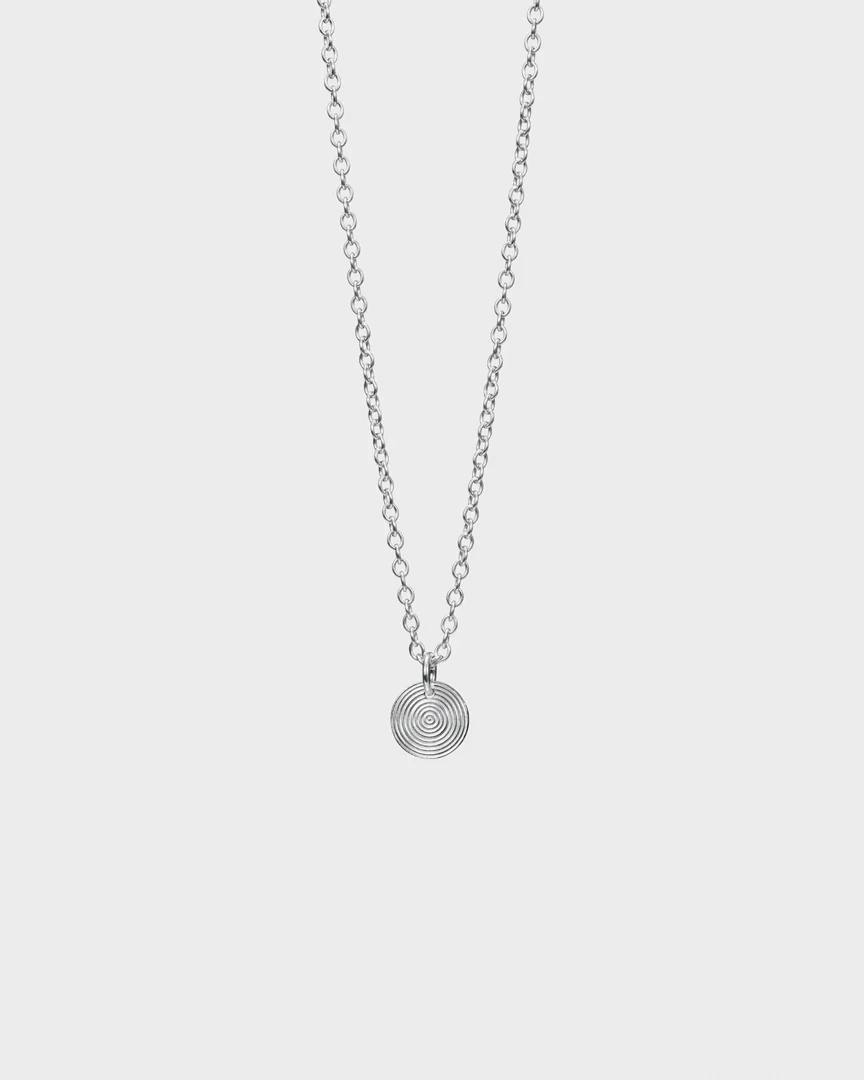 Pieni Kosmos-riipus on valmistettu viileästi välkehtivästä hopeasta. Riipus on kuvioitu molemmin puolin. Ankkuriketjussa säädettävä pituus 42/45/50 cm, jousirengaslukko.