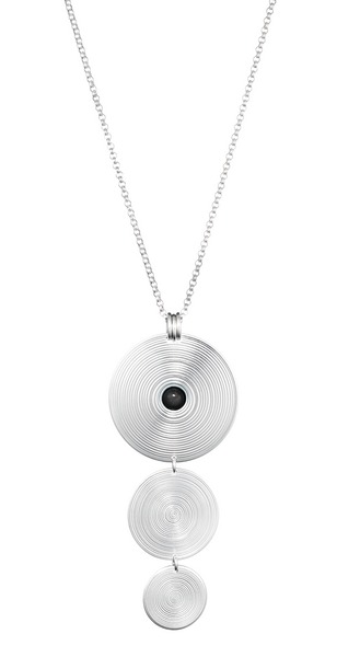 Hohtavan hopean ja mustan onyksi-kiven yhdistelmä luo näyttävään Kosmos-riipukseen jännitettä ja dramatiikkaa. Säädettävä pituus 45/42 cm. Saatavissa myös pronssisena.