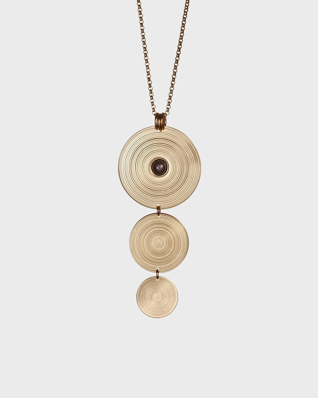 Kosmoksen kirkas pronssi hehkuu lämpimissä sävyissä. Kullanhohtoisen pronssin ja mustan korukiven yhdistelmä luo näyttäviin Kosmos-koruihin jännitettä ja dramatiikkaa. Papuketjussa säädettävä pituus 45/42 cm. Papukaijalukko.
