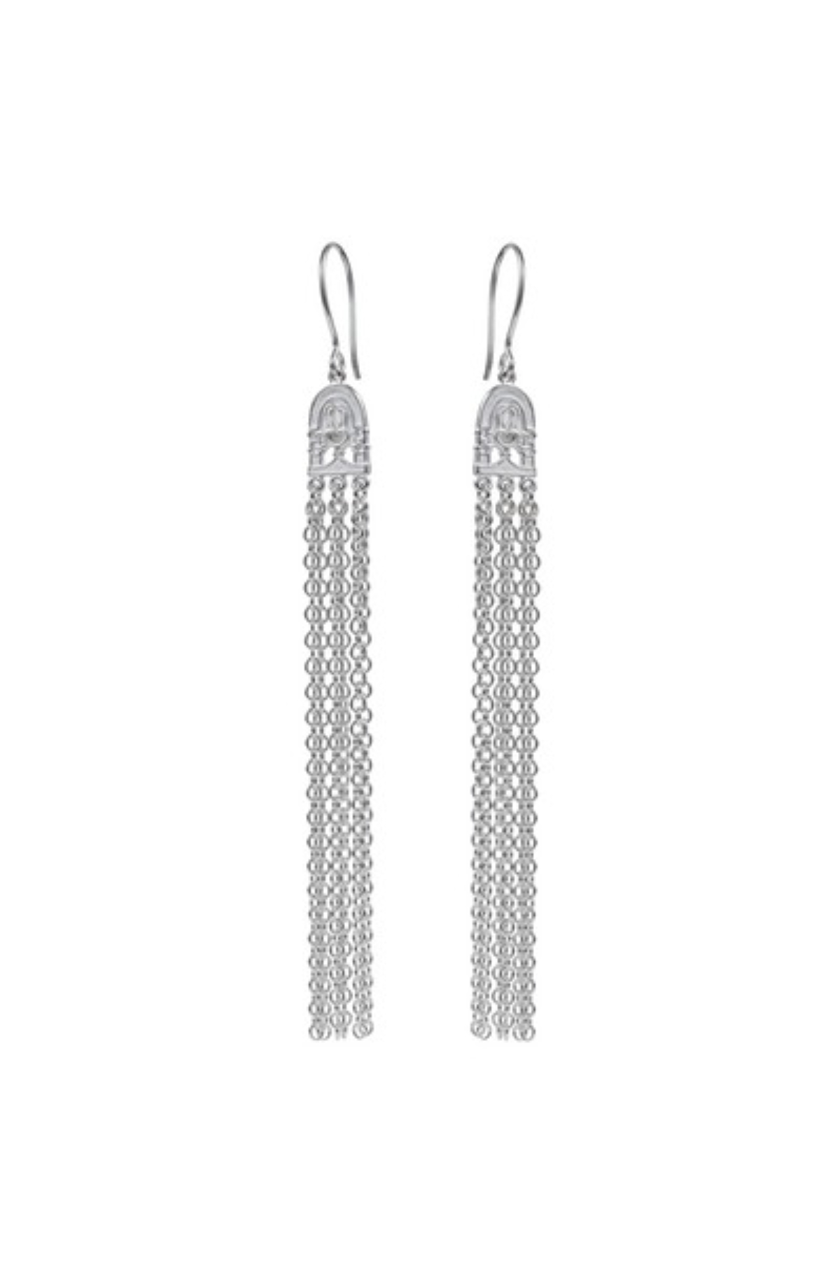 Vanhan klassikon uusi tulkinta. Korvakorun holvikaaren muotoisesta kauniisti kuvioidusta riipusosasta riippuu kuusi pitkää rinnakkaista ankkuriketjua. Riipusosan nurja puoli on sileä. Korvakorut ovat kirkasta hopeaa.