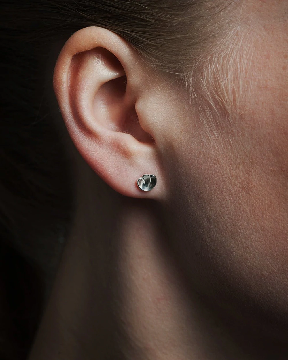 Pieni, eleetön hopeakorvakoru sopii hyvin jokapäiväiseen käyttöön ja yhdistyy koruun kuin koruun. Valo heijastuu kauniisti korvakorun aavistuksen koveralta pinnalta. Tappikiinnitys.