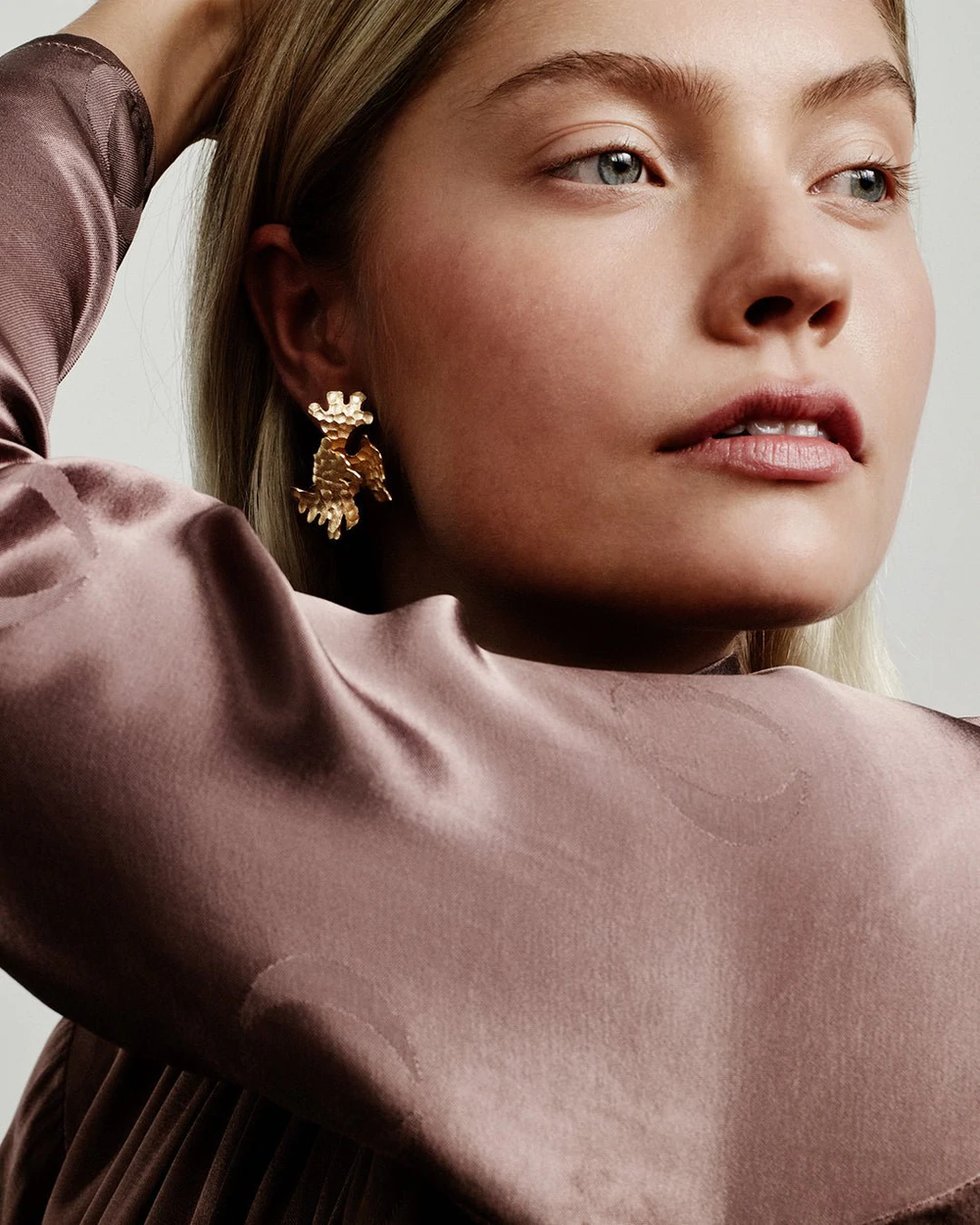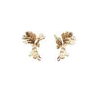 Veistoksellisen, mutta lehtimäisen kevyen korvakorun muoto, hienostunut pintastruktuuri ja pronssin kultainen hehku houkuttelevat tulemaan lähelle ja katsomaan tarkasti. Tappikiinnitys, tappi ja taustanasta hopeaa. Korvakoruihin on saatavissa lisäosat, joilla voit tehdä korvakoruista vieläkin näyttävämmät. Lisäosiin juotettu hopealankatappi pujotetaan korvakorun taustapuolella olevaan pieneen silmukkaan, ja kiinnitys varmistetaan pienellä silikonitulpalla. Sekä korvakorut että lisäosat ovat toistensa peilikuvat. Oikeanpuoleisen korvakorun ylä- ja alaosa on merkattu ympyrällä yhdistämistä ja tunnistamista varten. Vasemmanpuoleisessa korvakorussa ei ole merkintää. Saatavissa myös hopeisina.