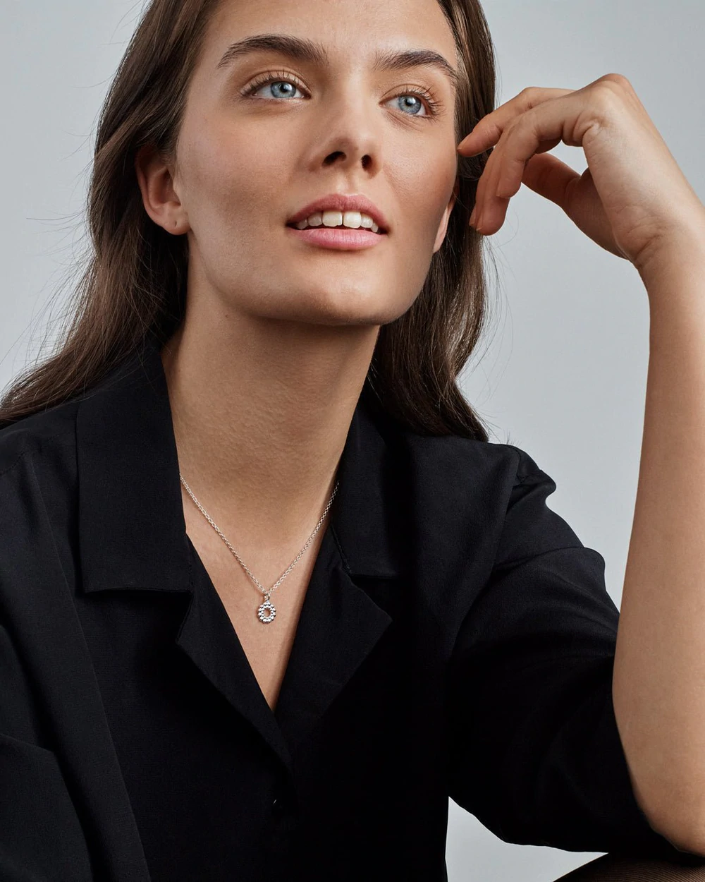 Pieni koru täynnä iloa ja valoa. Kauniisti välkehtivä kirkkaasta hopeasta tehty Valoisa-riipus ilahduttaa kaikkia minimalististen korujen ystäviä. Ovaalipapuketjussa säädettävä pituus 45/42/38 cm. Jousirengaslukko