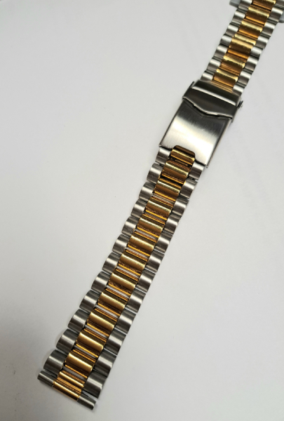 Tyylikäs kaksivärinen teräksinen ranneke tuplalukolla.