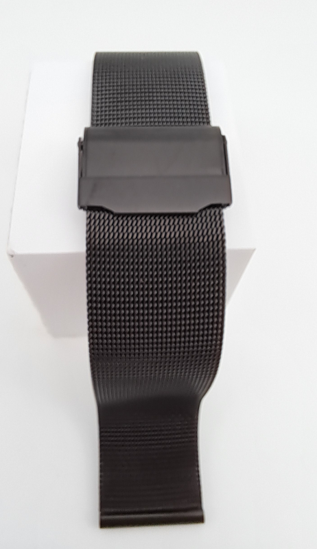 Tyylikäs musta teräksinen mesh-ranneke tuplalukolla.